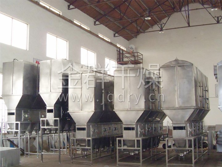潔凈的熱風(fēng)經(jīng)閥板分配進(jìn)入床體內(nèi),從加料器進(jìn)入的濕物料被熱風(fēng)形成沸騰狀態(tài)。由于熱風(fēng)與物料廣泛接觸,增強(qiáng)了傳熱傳質(zhì)的過程,因此在較短時(shí)間內(nèi)就可干燥。如用連續(xù)型,物料從床體的一頭進(jìn)入,經(jīng)過幾十秒至幾分鐘沸騰干燥,自動(dòng)從床體另一頭流出。本設(shè)備一般進(jìn)行負(fù)壓操作。