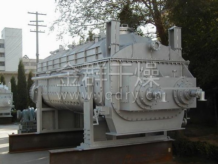 空心軸上密集排列著楔型中空槳葉,熱介質(zhì)經(jīng)空心軸流經(jīng)槳葉。單位有效容積內(nèi)傳熱面積很大,熱介質(zhì)溫度從-40℃到320℃,可以是水蒸汽,也可以是液體型:如熱水、導(dǎo)熱油等。間接傳導(dǎo)加熱,沒(méi)有攜帶空氣帶走熱量,熱量均用來(lái)加熱物料。熱量損失僅為通過(guò)器體保溫層向環(huán)境的散熱。楔型槳葉傳熱面具有自清潔功能。物料顆粒與楔型面的相對(duì)運(yùn)動(dòng)產(chǎn)生洗刷作用,能夠洗刷掉楔型面上附著物料,使運(yùn)轉(zhuǎn)中一直保持著清潔的傳熱面。槳葉干燥機(jī)的殼體為Ω型,殼體內(nèi)一般安排二到四根空心攪拌軸。殼體有密封端蓋與上蓋,防止物料粉塵外泄而充分發(fā)揮作用。